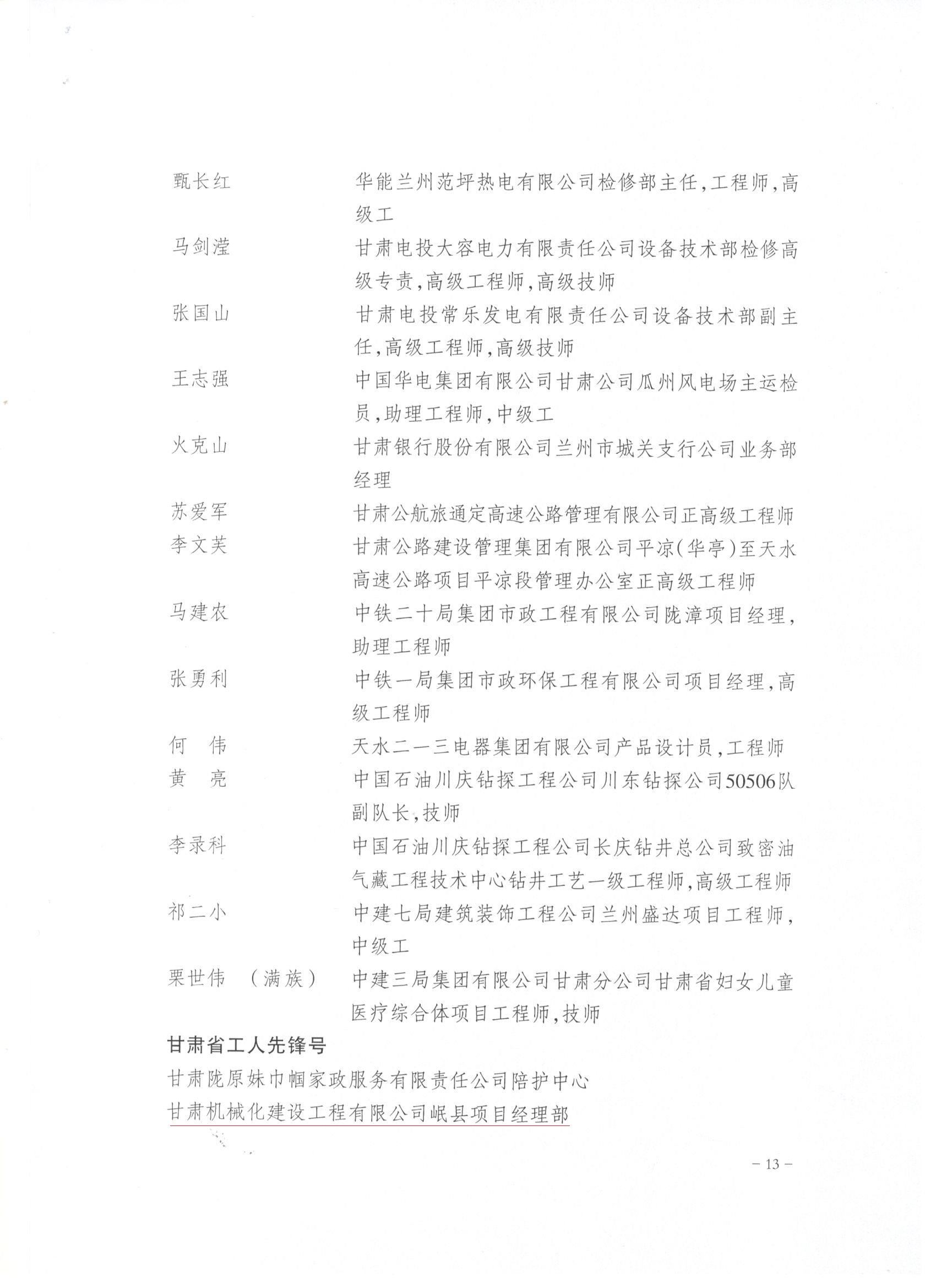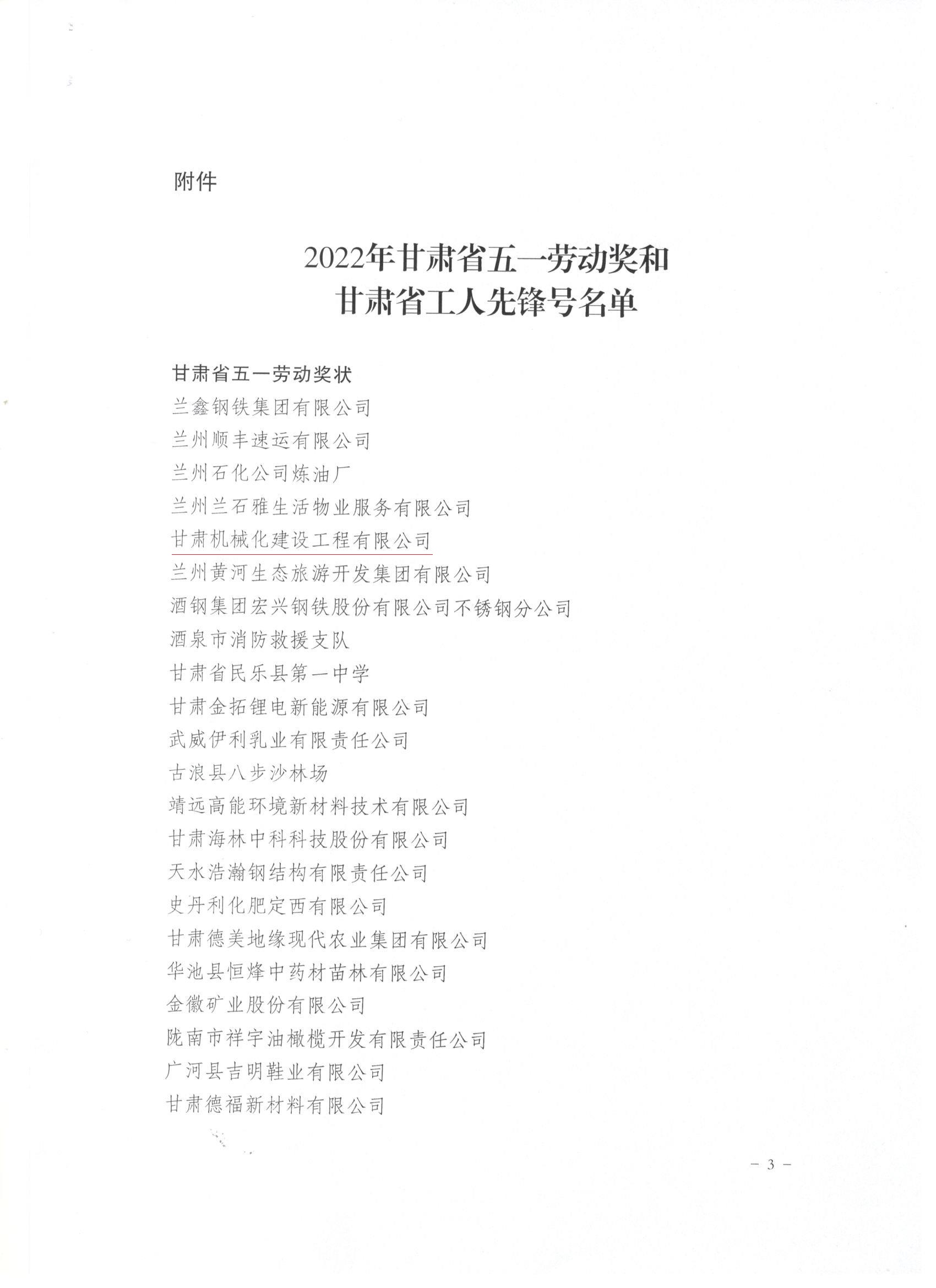 近日,甘肅省總工會發布了《關于表彰2022年甘肅省五一勞動獎和甘肅省工人先鋒號的決定》,我司被授予“甘肅省五一勞動獎”和“甘肅省工人先鋒號”。