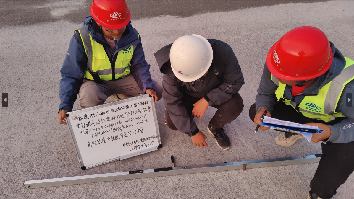4月24日,檢查組來到施工現場對我司麗水機場項目部施工質量控制、安全管理情況進行了檢查,對本次驗收的道面基層分部工程全過程進行了監督,一致同意通過此次分部驗收。